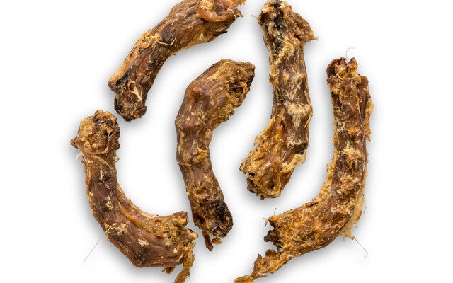 Gedroogde kippennekken combineren smaak, voeding en verzorging in één natuurlijke traktatie – een verantwoorde keuze voor honden van alle leeftijden.